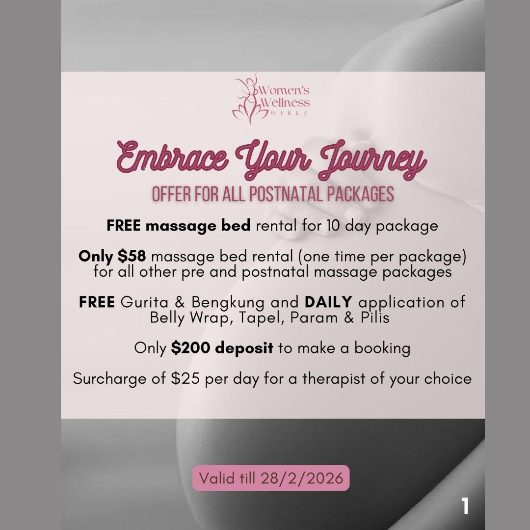 "I am so glad to sign up to Women’s Wellness Werks and met Kak Zita. She took care to ensure that the treatments she gave me were customised to help my recovery. All her massages were very relaxing and I fell asleep each time. She intuitively understood where I needed extra care - whether my back was strained from nursing, or my milk supply needed a check. Kak Zita went over and beyond expectations in checking on my physical emotional and mental well being and sharing her knowledge and experience on infant care. My baby even benefited from a number of massages."Christian Yap